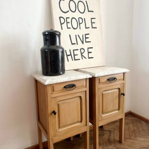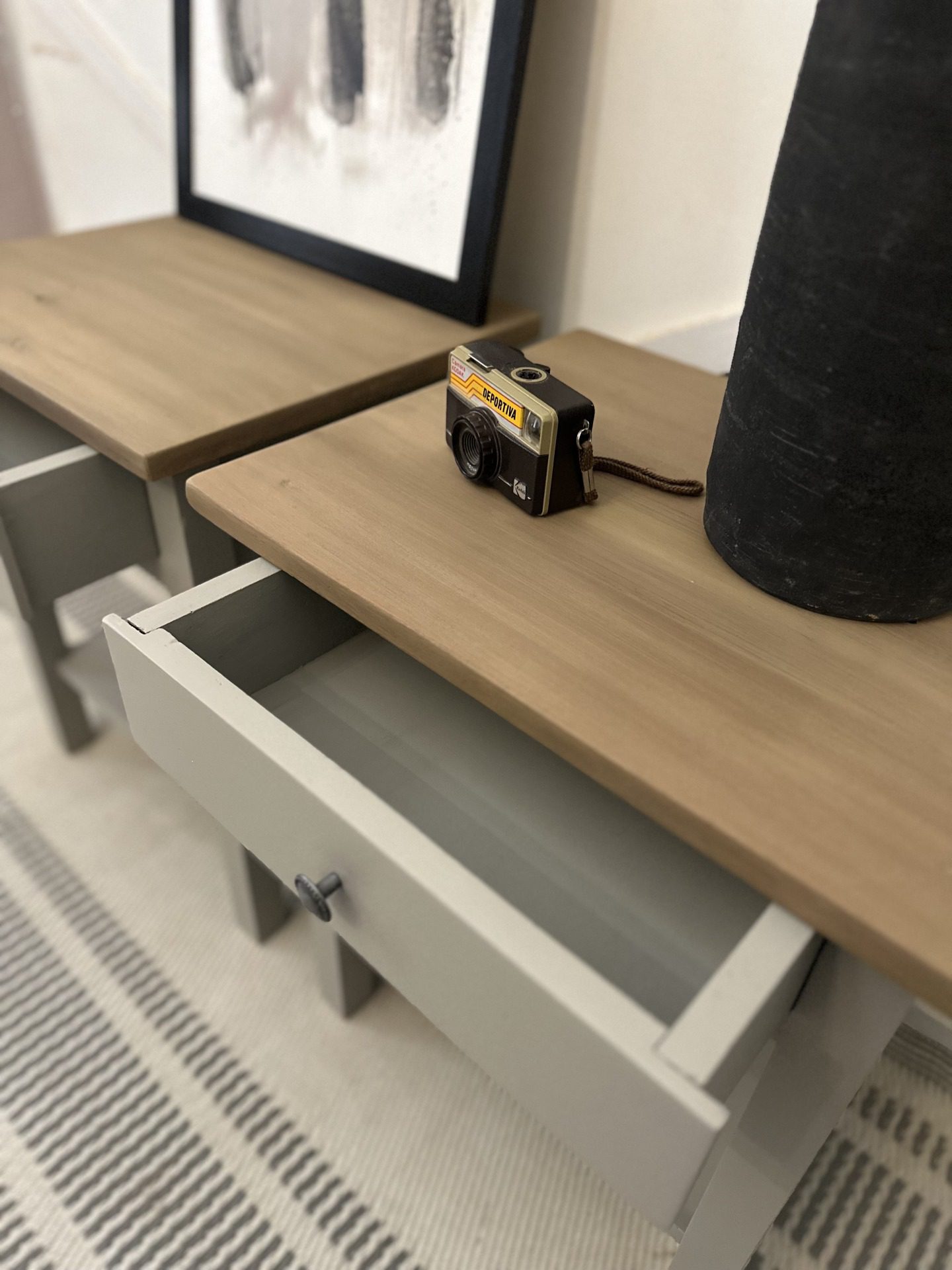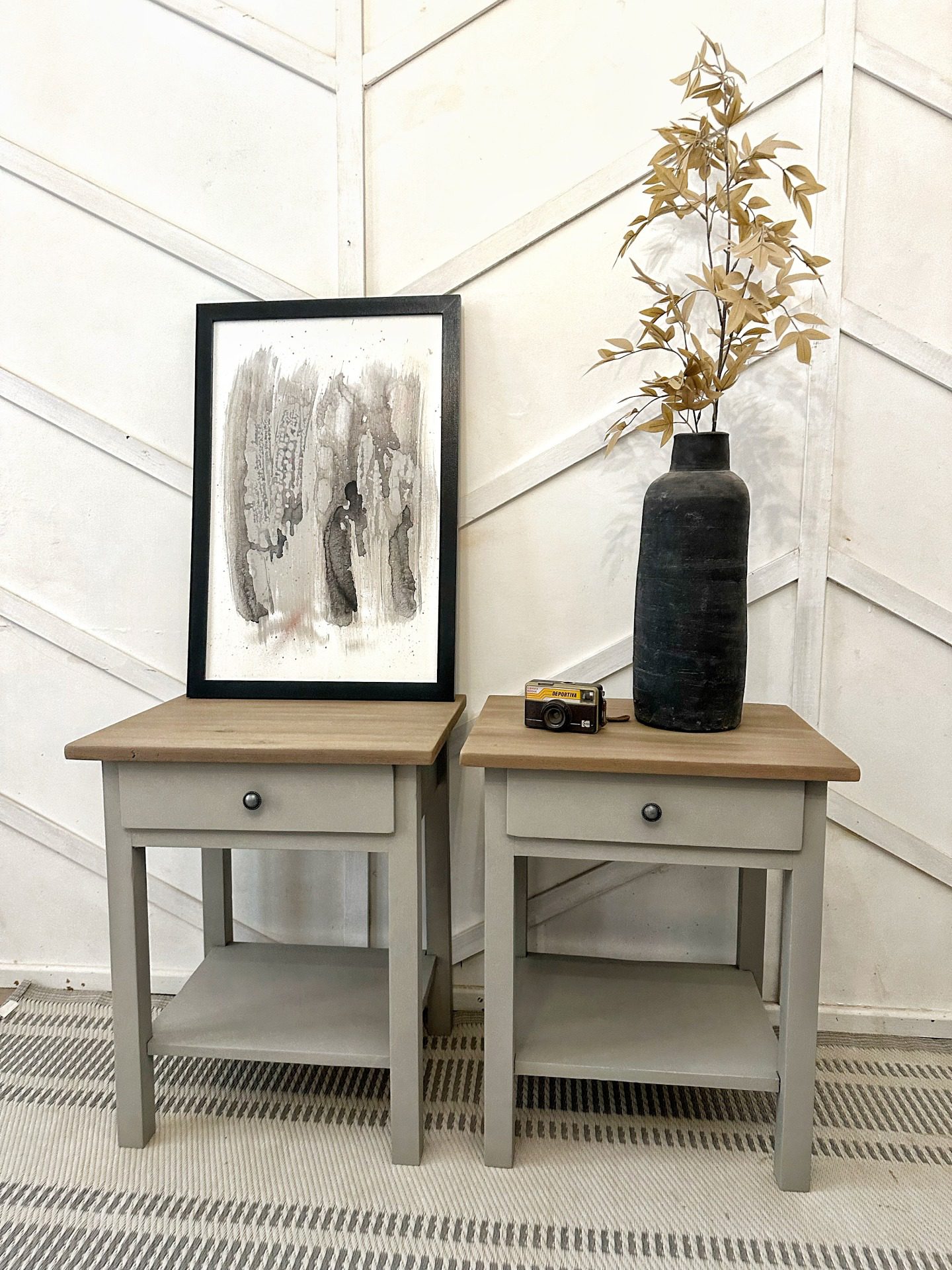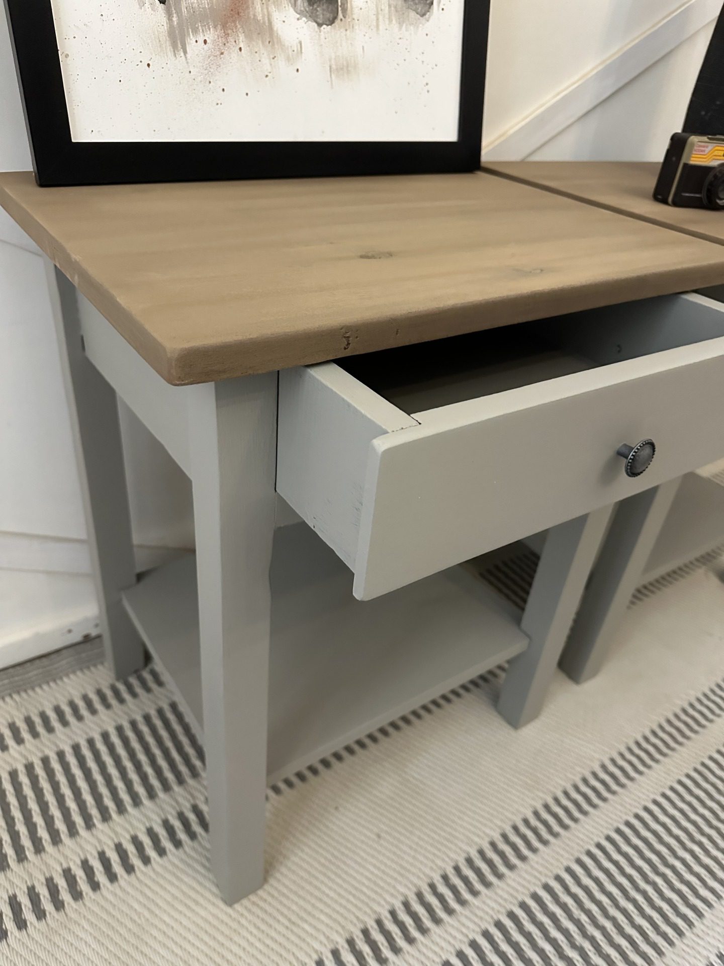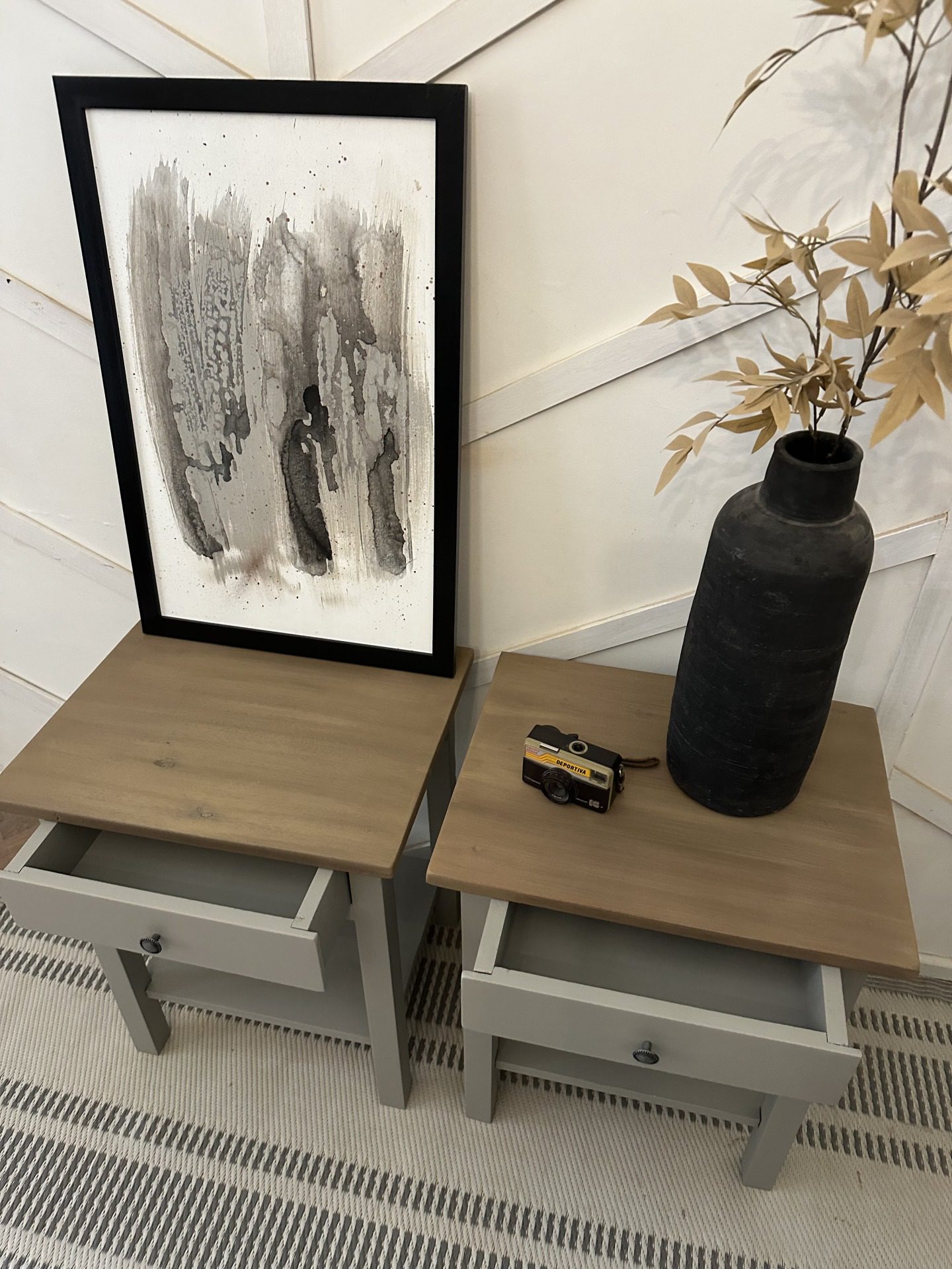 Estas mesitas son ideales para cualquier dormitorio por su combinación de color gris y madera.